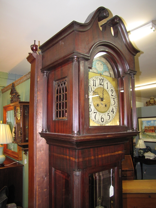 Tall cased American clock made by Colonial Manufacturing Co. of Veeland ,Michigan USA with three brass tube chimes.